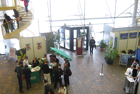 Berlin (tour´s/Alexander Bohr) :Am 6. September versuchte der Ausbildungstag Süd-Ost 2012 im Freizeit- und Erholungszentrum Wuhlheide (FEZ) Schülern Anregungen zur künftigen Berufsorientierung zu geben. Aussteller aus Treptow-Köpenick und Umgebung stellten sich den Fragen neugieriger Schüler und bewarben Ausbildungsplätze in ihren Betrieben. Vor dem Eingang des FEZ-Hauptgebäudes, wo die Bundeswehr mehrere Einsatzfahrzeuge zu Demonstrationszwecken aufgestellt hatte, herrschte reger Andrang. Im Foyer waren die Stände der fast 60 Aussteller auf das Erd- und Obergeschoss verteilt. Neben öffentlichen Einrichtungen, wie dem Bezirksamt Treptow-Köpenick, gab es auch Vertreter des Einzelhandels, zum Beispiel Edeka und die Parfümeriekette Douglas, in Berlin ansässiger Großunternehmen, wie der Berlin-Chemie AG, sowie einiger Berufs- und Fachhochschulen. Auch eine kleine Bühne für Vorträge gab es in direkter Nähe des Eingangs. Darüber hinaus boten einzelne Unternehmen in separaten Räumen Präsentationen zur eigenen Darstellung und genaueren Vorstellung von Ausbildungs- und Studienplätzen an. Der Stand des DLR, der sich neben dem „orbitall“, abseits der anderen befand, erwies sich als ungünstig gelegen, da kaum Schüler den Weg dorthin fanden. Dabei hätte die Thematik des DLR, besonders wohl die Raumfahrt, einige Interessenten gefunden. Ähnlich erging es dem Team des METEUM, das in einem zusätzlichen Raum für naturwissenschaftlich Interessierte noch Anschauungsmaterial und Informationen zu den Themenbereichen Biochemie, Bionik und Solarzellen bereithielt. Vertreten waren auch soziale Einrichtungen, wie das Köpenicker Seniorenzentrum, diese haben es heutzutage besonders schwer. Neben dem herrschenden Fachkräftemangel und dem Ausbleiben von Zivildienstleistenden, gibt es noch zusätzliche Personalprobleme, da sich kaum mehr junge Leute für soziale Berufe interessieren und engagieren. Ziel des Ausbildungstages war daher auch, möglichst viel qualifizierten Nachwuchs für diese, aber auch für die anderen vertreten Berufe zu finden.